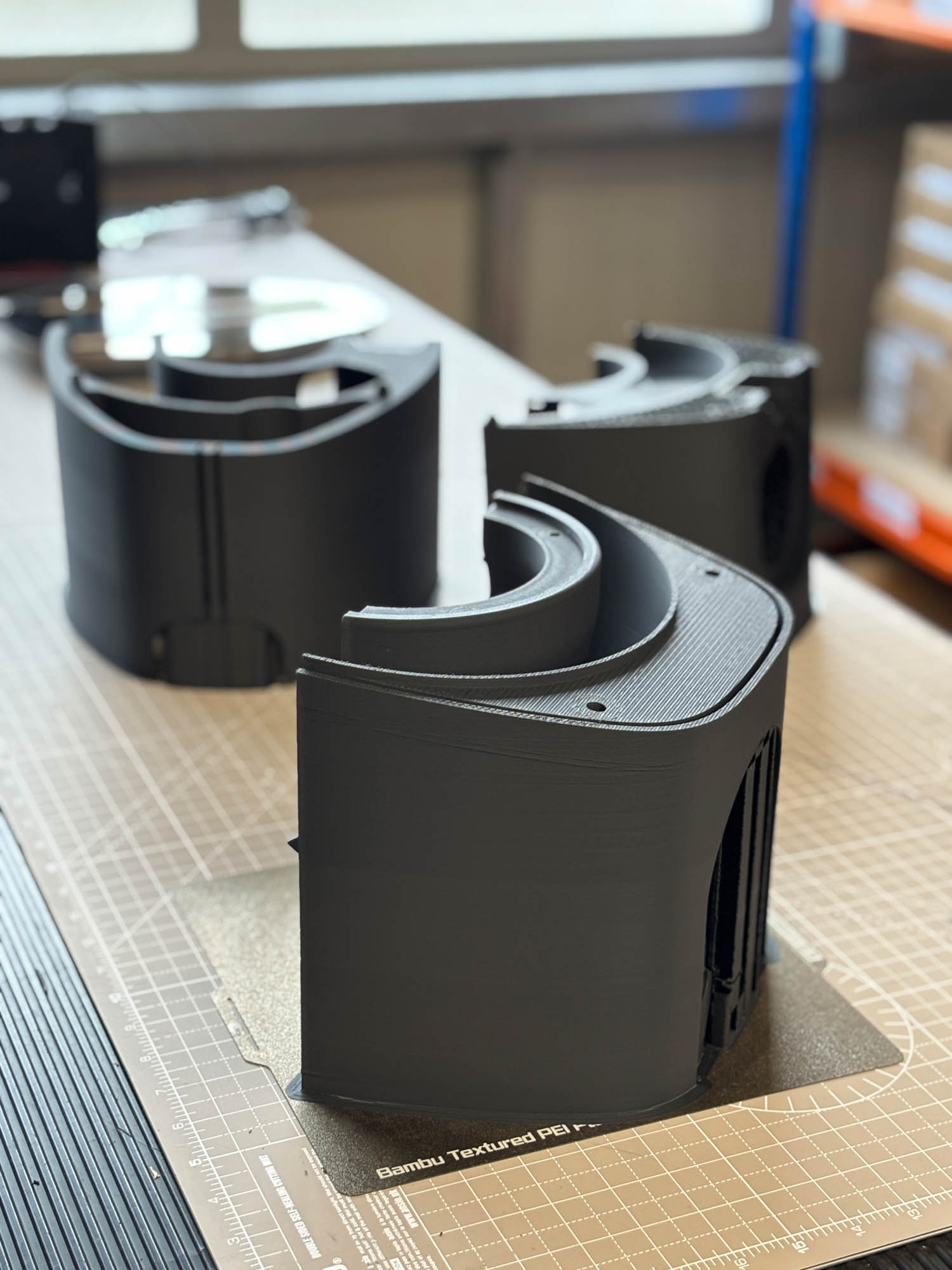 After testing multiple size and speed machines, the team decided on using Bambu Lab printers, bringing in-house Bambu’s H2D printer and a fleet of its PS1 3D printers. The team speaks highly of their dependability, as well as their widespread use in printing bureaus.
