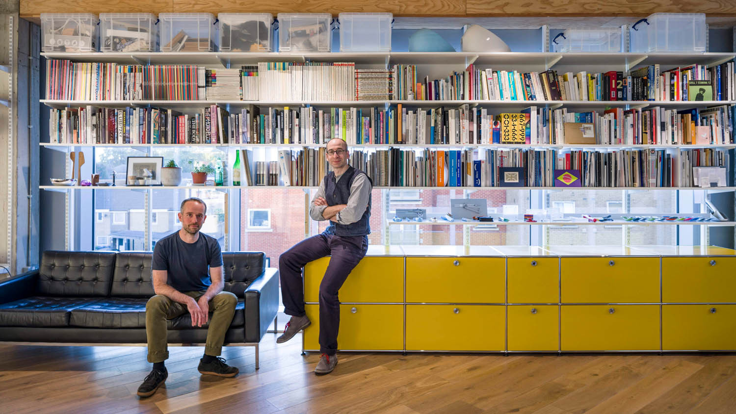 Entering Goodwin Hartshorn’s bright office space in Deptford, South London, visitors quickly encounter a striking line-up of tall Bowers & Wilkins floorstanding speakers, curated furniture, and walls covered in shelving filled with examples of the company’s client work and sources of inspiration.