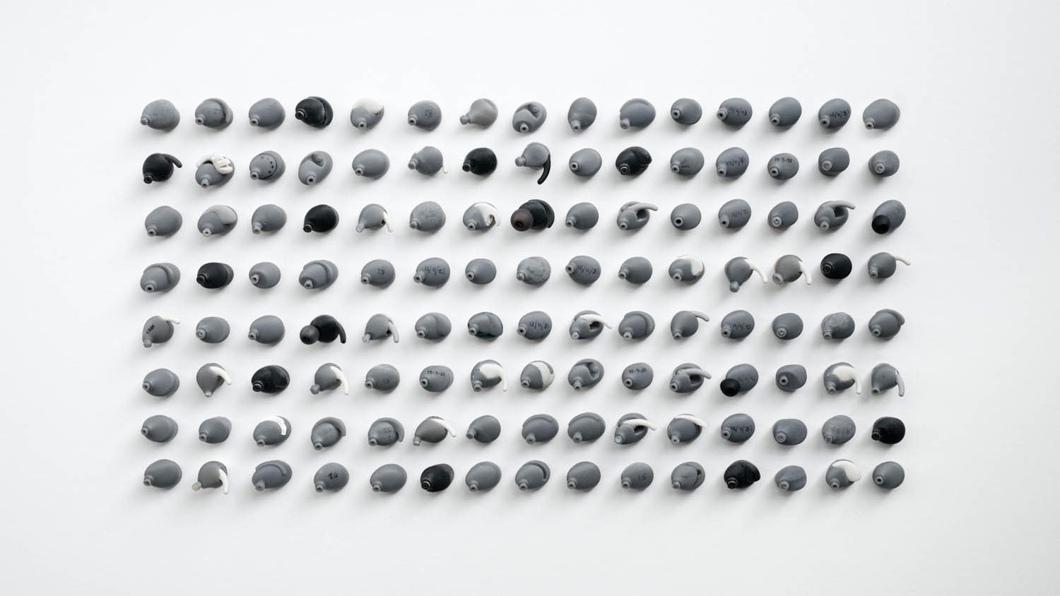 Some are tubular, allowing the light to reflect with a curvature more natural to that of an earbud, while other plaques have gentler curved surfaces alongside metallic tubes, better for explaining headphone touchpoints.