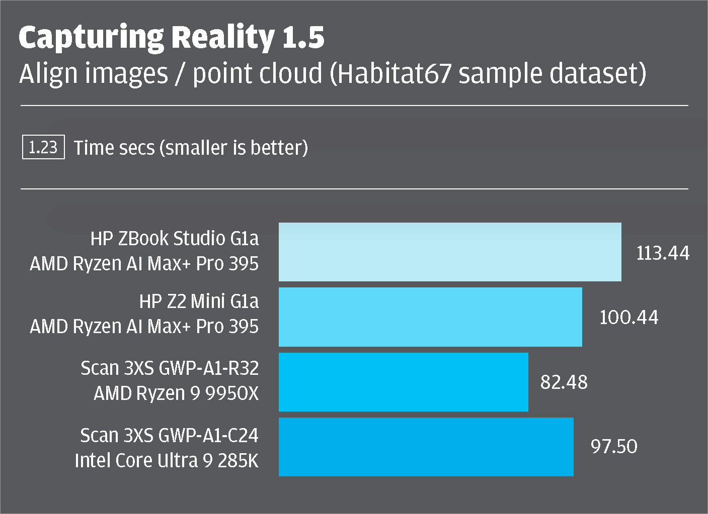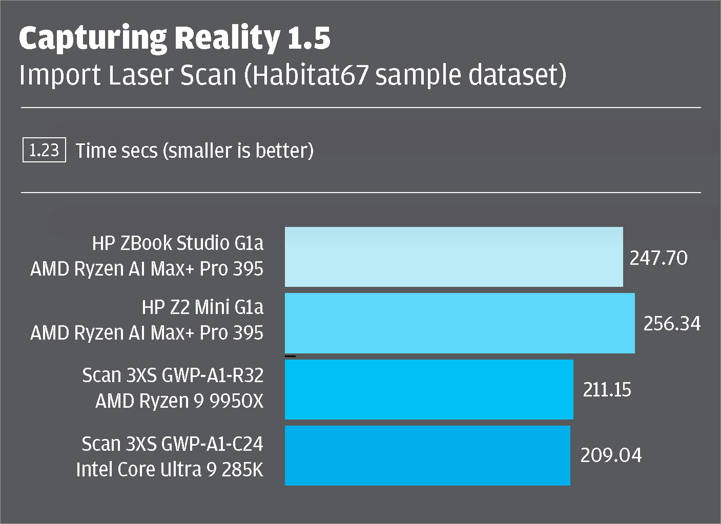 We put the Z2 Mini G1a to work in a variety of real-world CAD, visualisation, simulation and reality modelling applications. Our test machine was fully loaded with the top-end AMD Ryzen AI Max+ Pro 395 and 128 GB of system memory, of which 32 GB was allocated to the AMD Radeon 8060S GPU. All testing was done at 4K resolution.