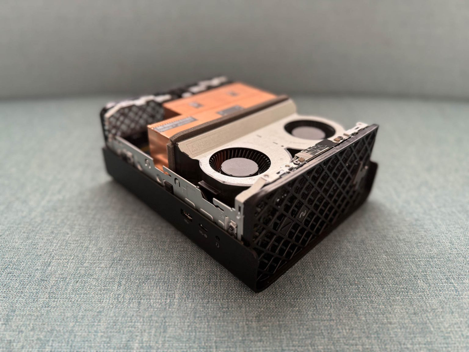 Serviceability on the Z2 Mini G1a is limited, as the processor and system memory are soldered to the motherboard, leaving no scope for major upgrades. It’s therefore crucial to select the right specifications at purchase (more on this later). The two M.2 NVMe SSDs and several smaller components, however, are easily replaceable, and two Flex I/O ports allow for additional USB connections or a 10GbE LAN upgrade.