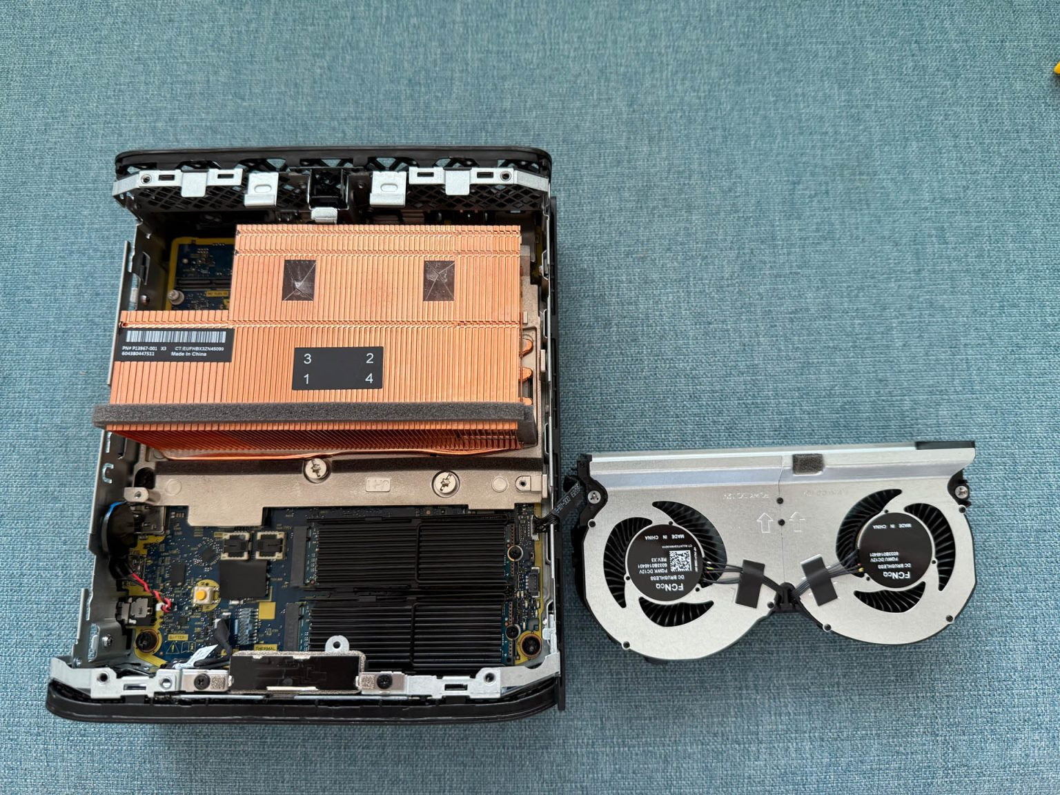 The chassis is divided into two sections, separated by the system board. The top two-thirds house the key components, fans and heatsink, while the bottom third is mostly reserved for the 300W power supply.